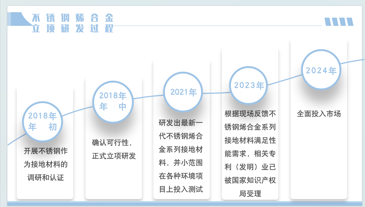 采用外層0.7mm不銹鋼(標號根據使用環(huán)境選擇)經過石墨烯專有配方處理后包覆高導性的合金材(合金材表層也經過石墨烯專有配方的涂層處理)經過激光焊、拉拔、退火再拉拔、再退火形成的一種導電性優(yōu)越、耐腐蝕能力強的一種新型接地材料。